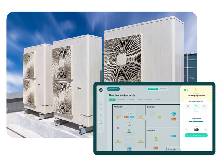 Notre solution permet de piloter simplement et à distance les équipements techniques de vos bâtiments : chauffage, ventilation, climatisation, éclairage, compresseurs.